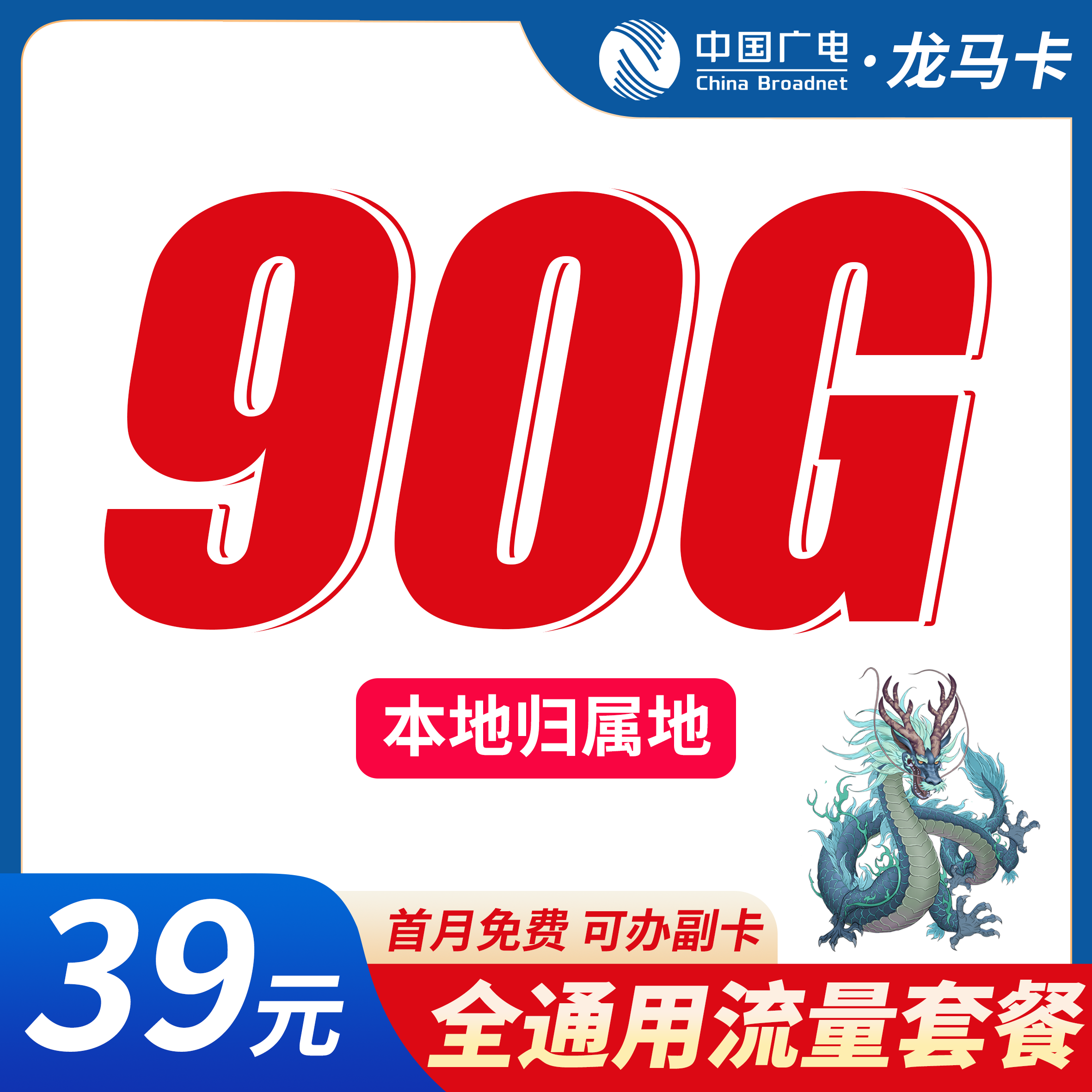 广电龙马卡39元90G+可办理副卡+本地归属地!