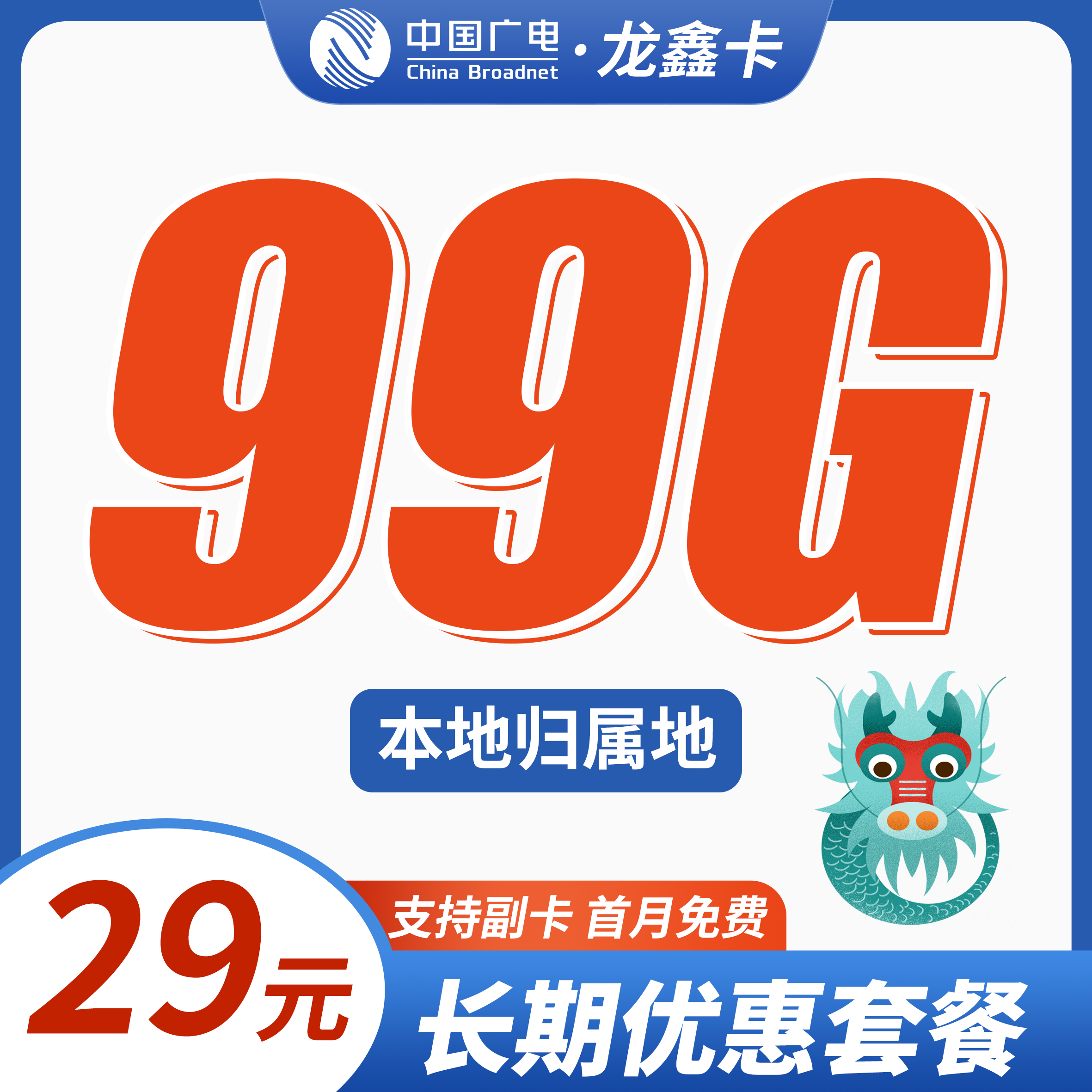 广电龙鑫卡29元99G+可结转+本地归属地!